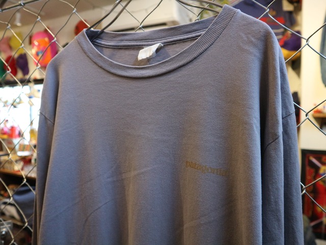 USA古着Patagoniaパタゴニア★OLD90年代USA製バックプリントロンT★雰囲気物アウトドア★サイズSオーガニックコットンアセ紺