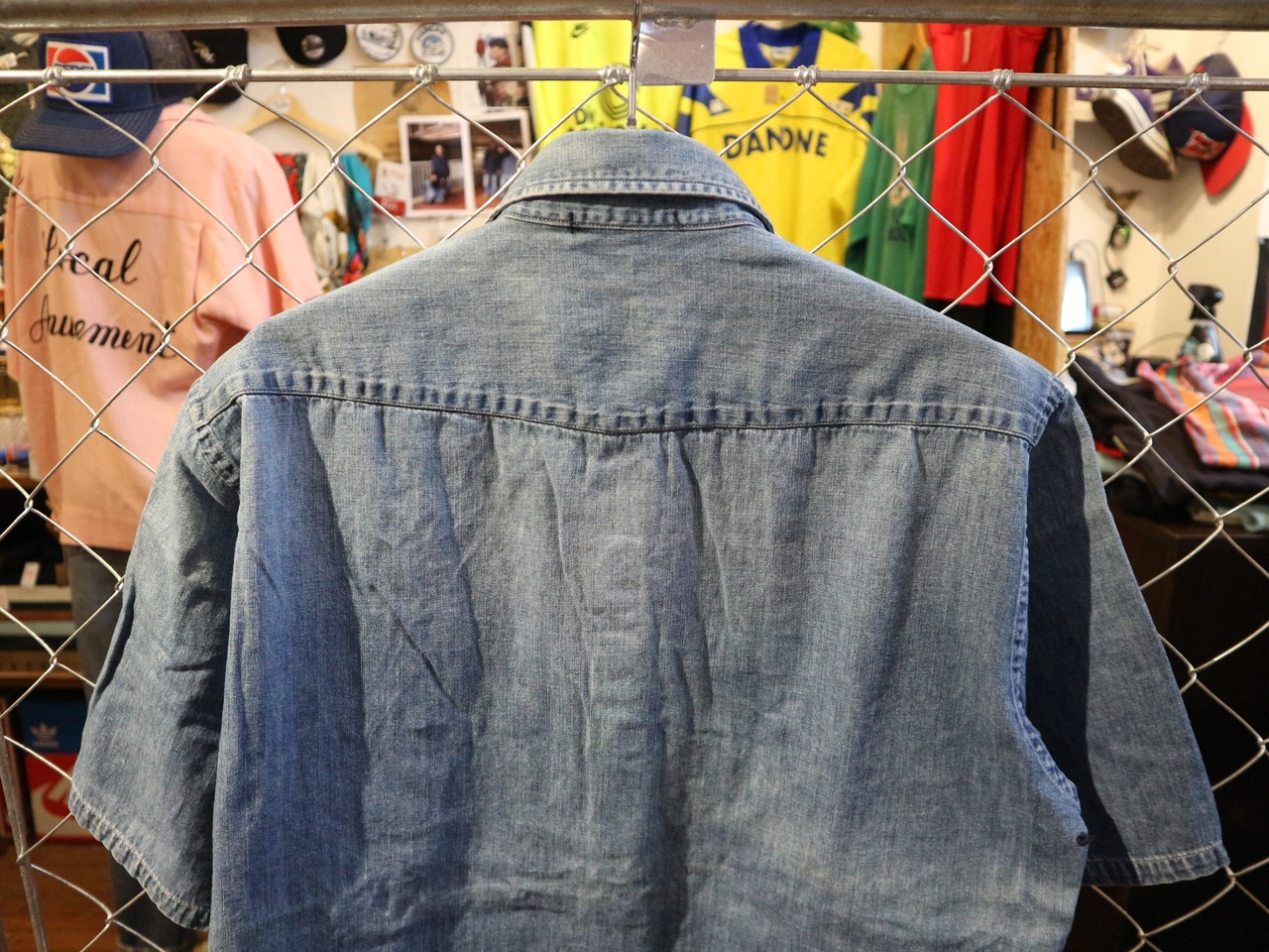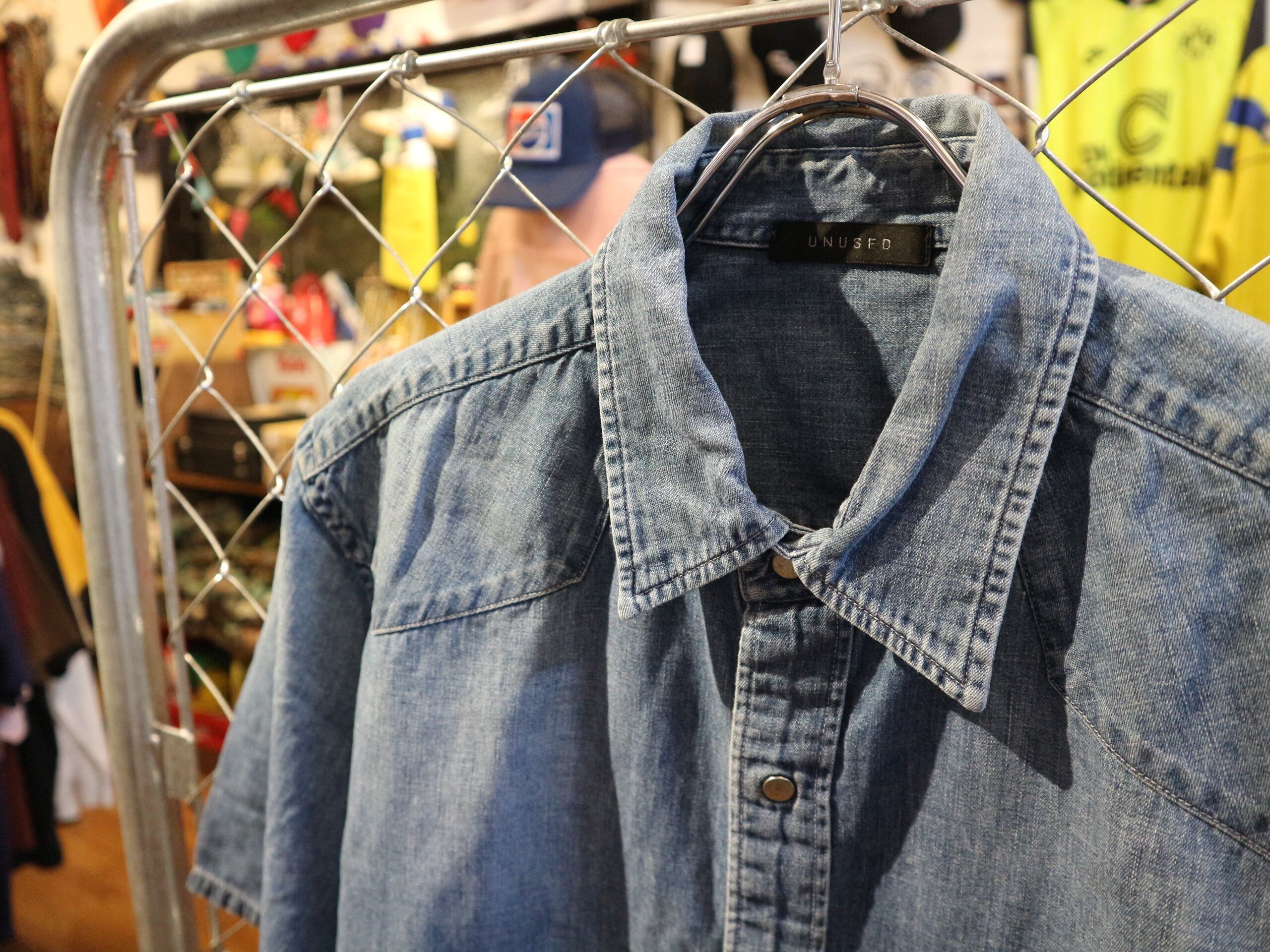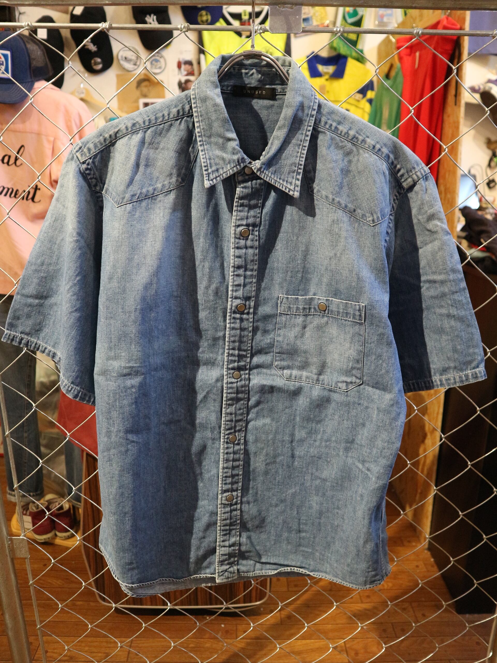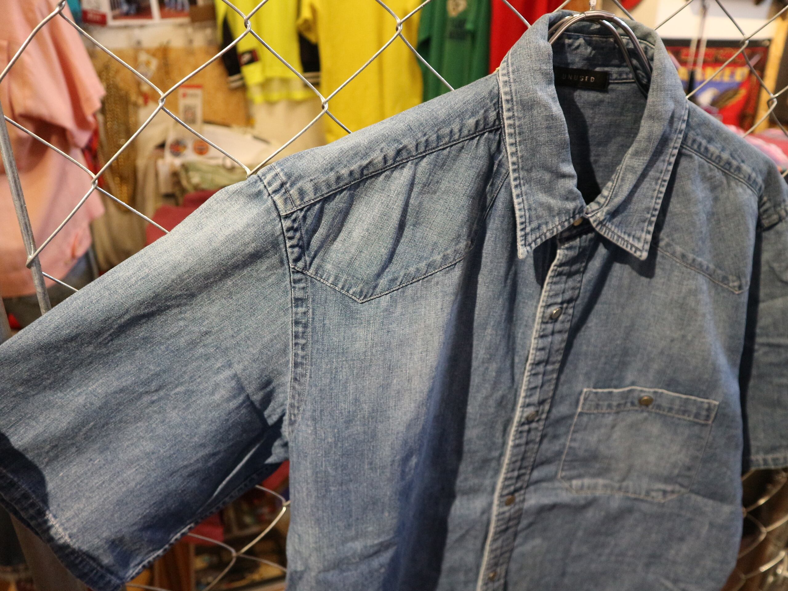 UNUSEDアンユーズド★日本製半袖デニムシャツ薄手★ウェスタンビンテージ加工スナップボタン★サイズM‐L相当