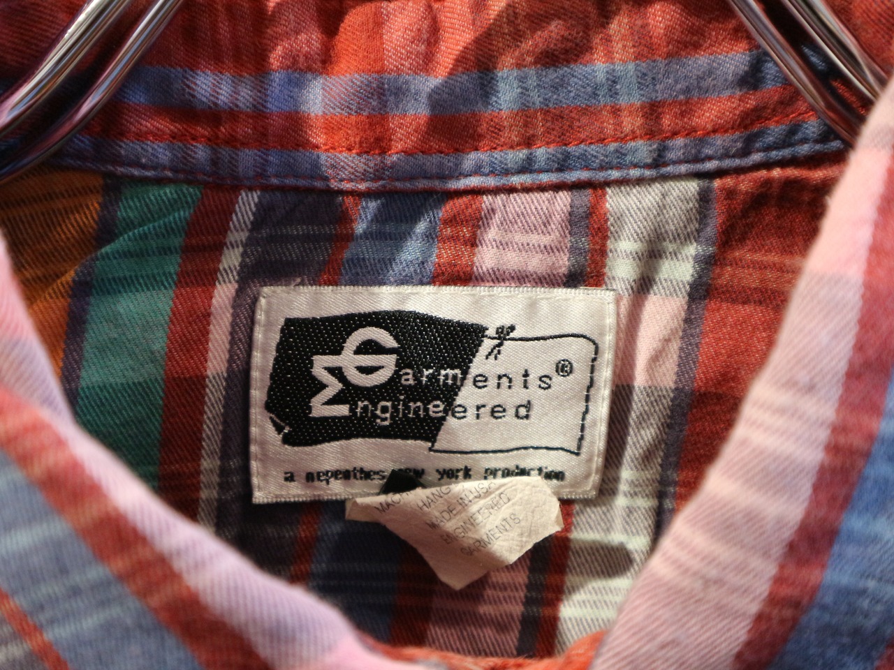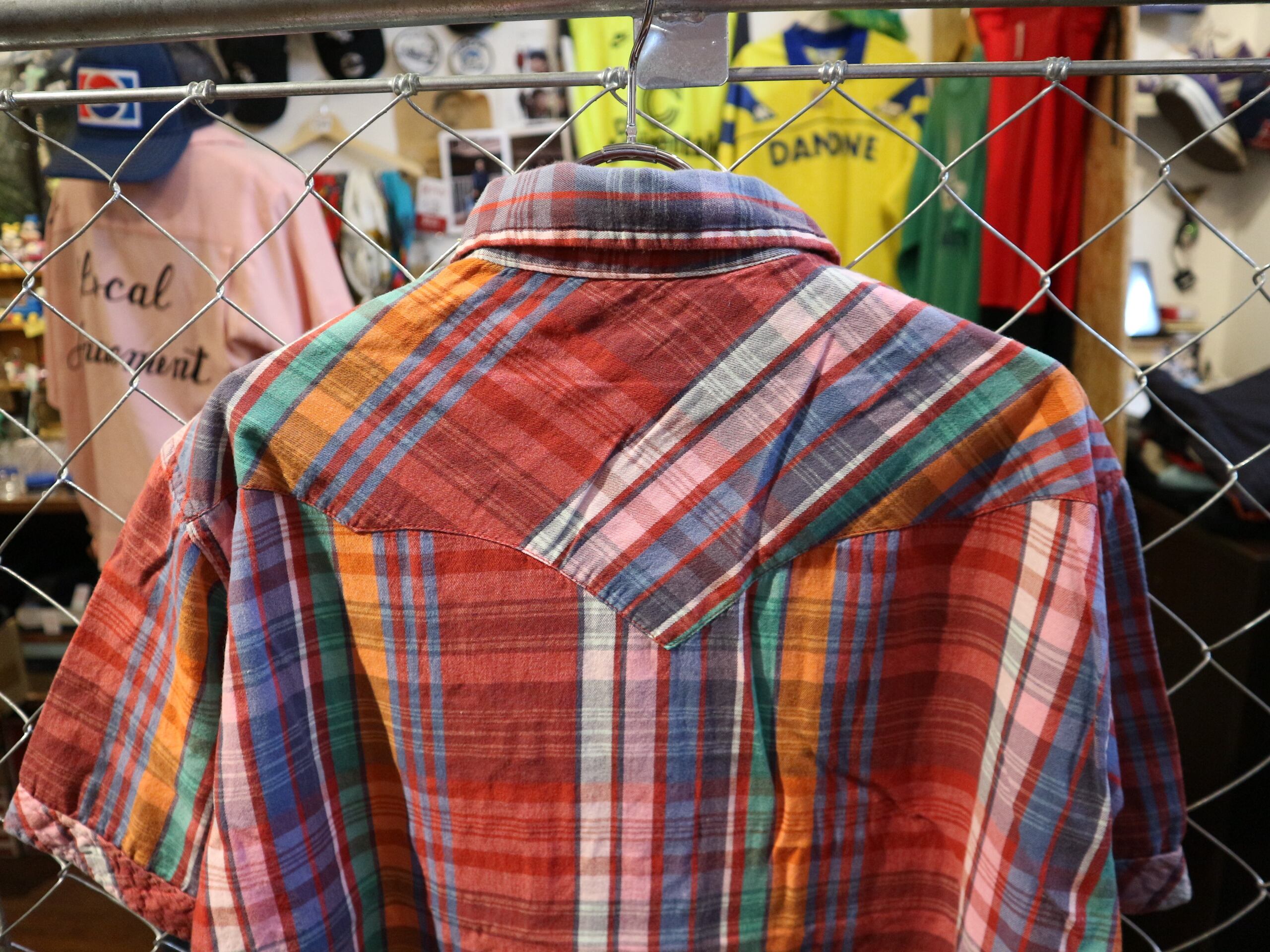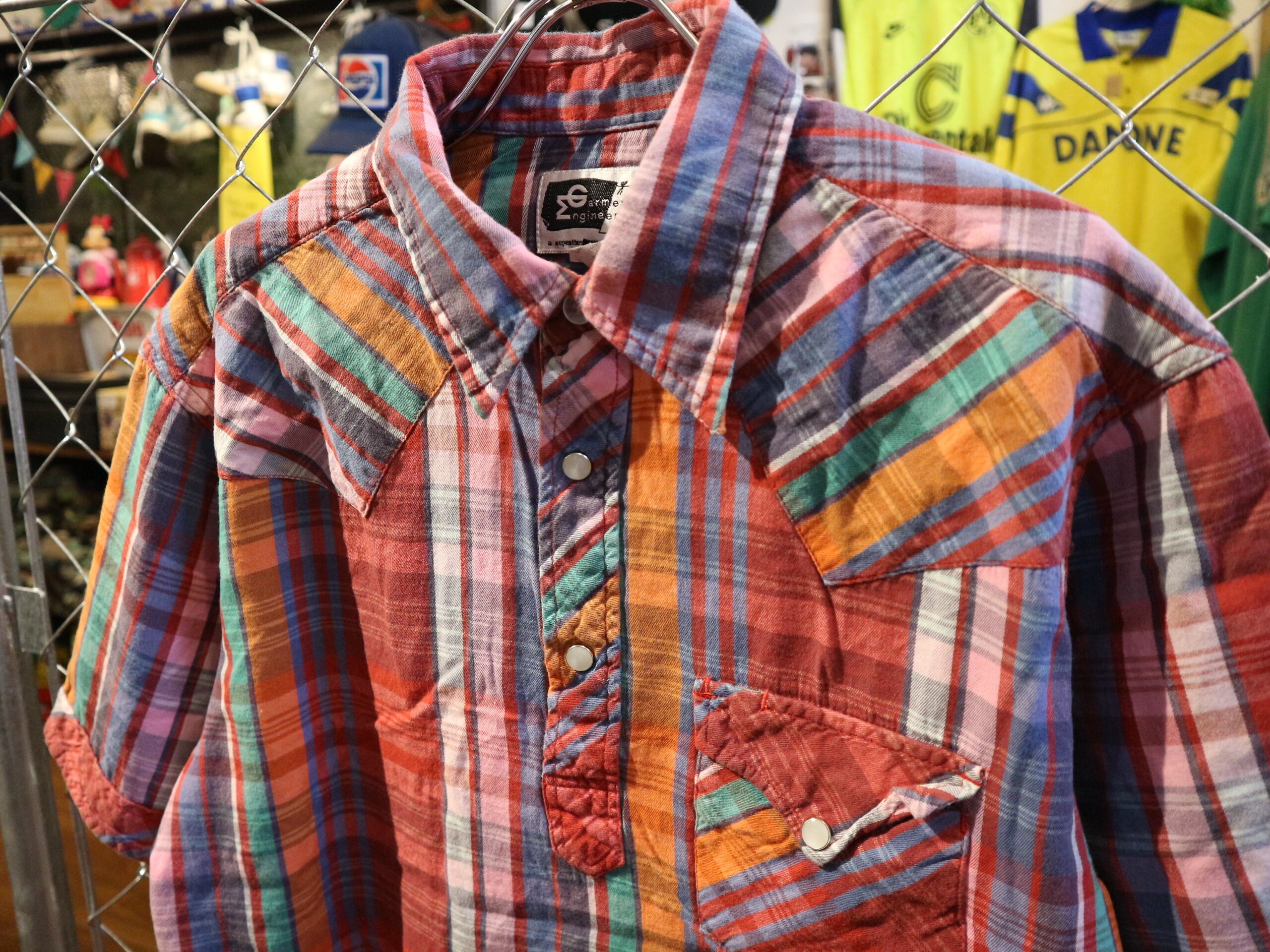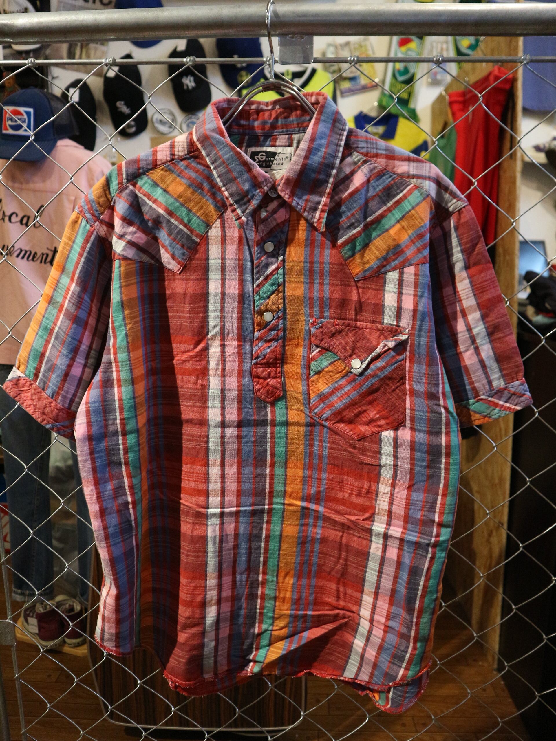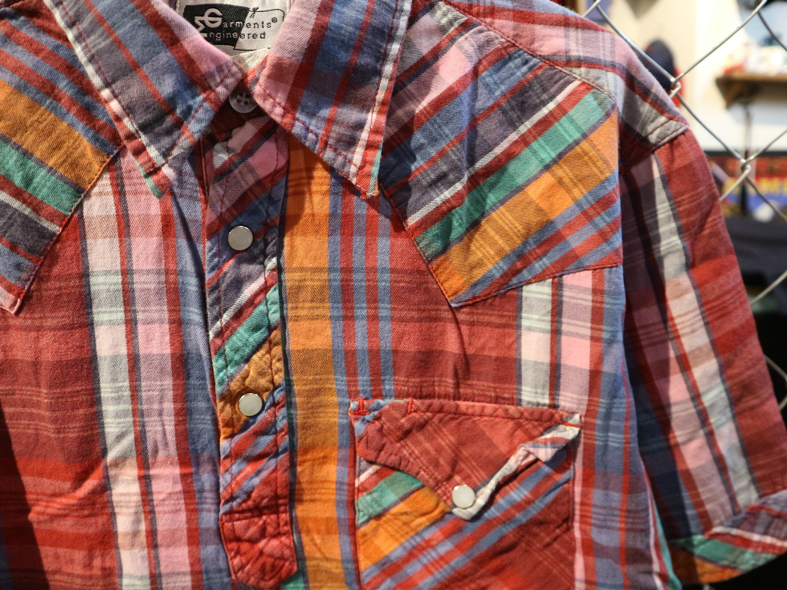 送料430円可★EGエンジニアドガーメンツ★USA製半袖プルオーバーシャツ★ウェスタンマドラスチェック★サイズLコットン100%マルチカラー