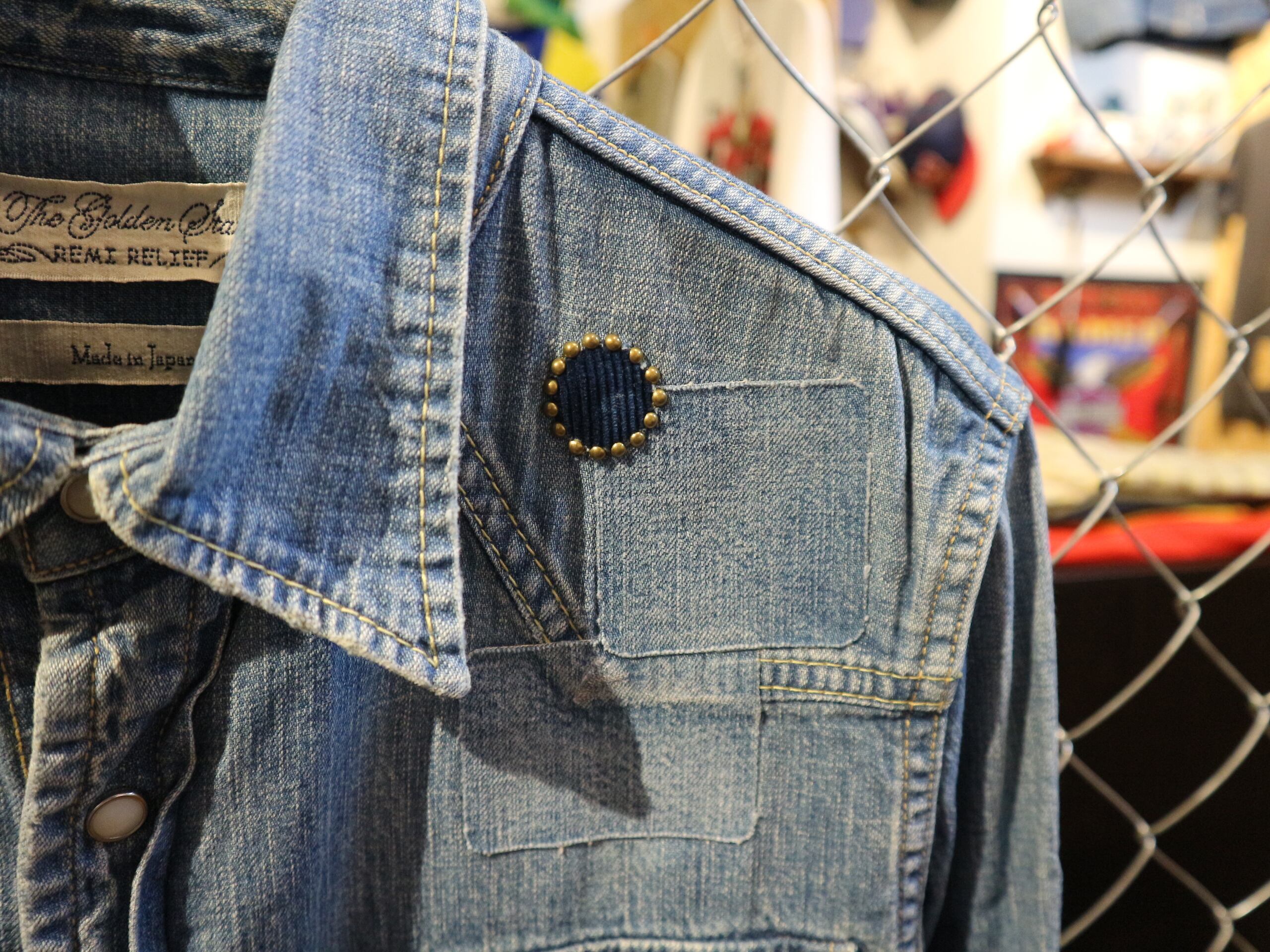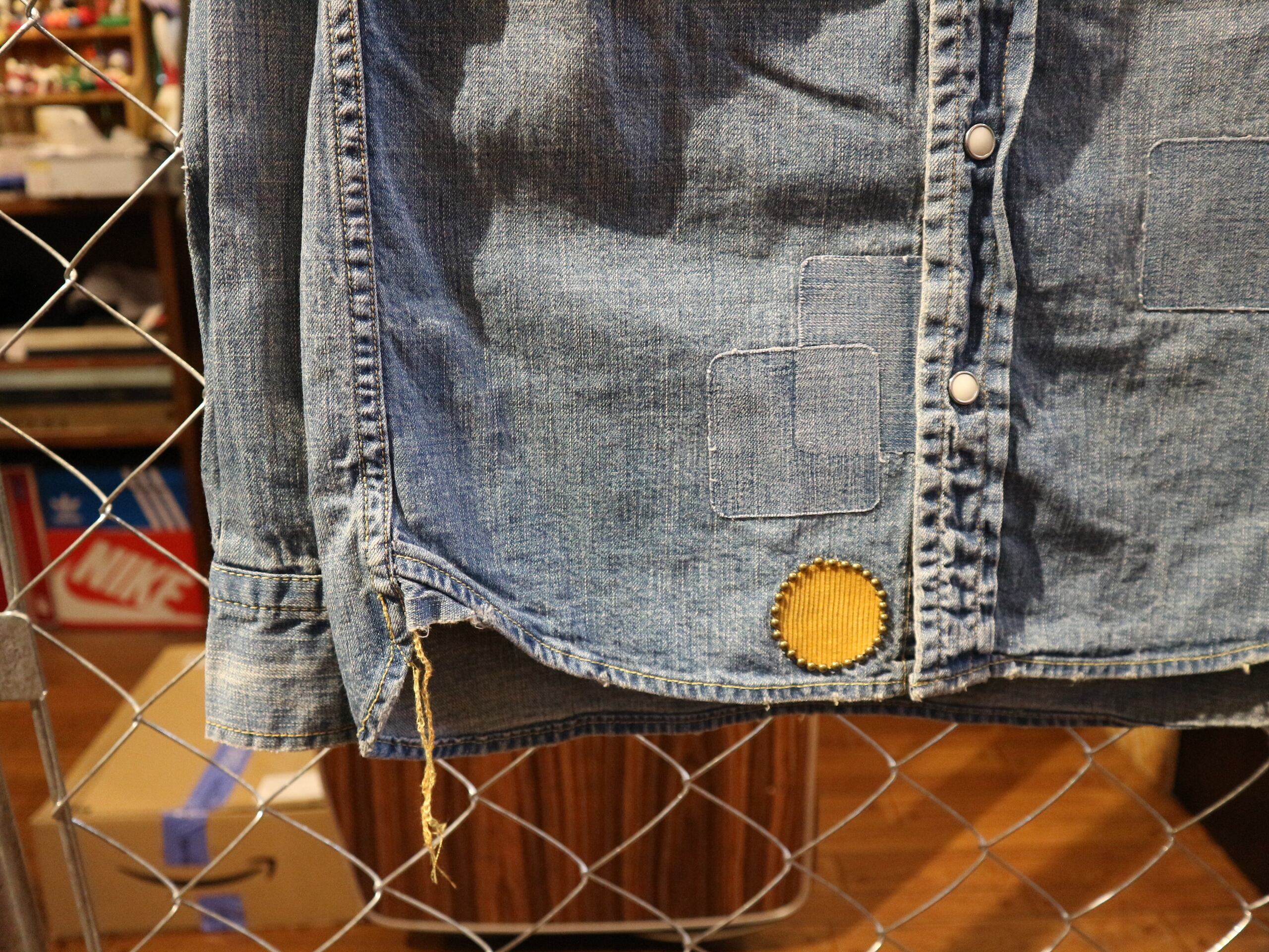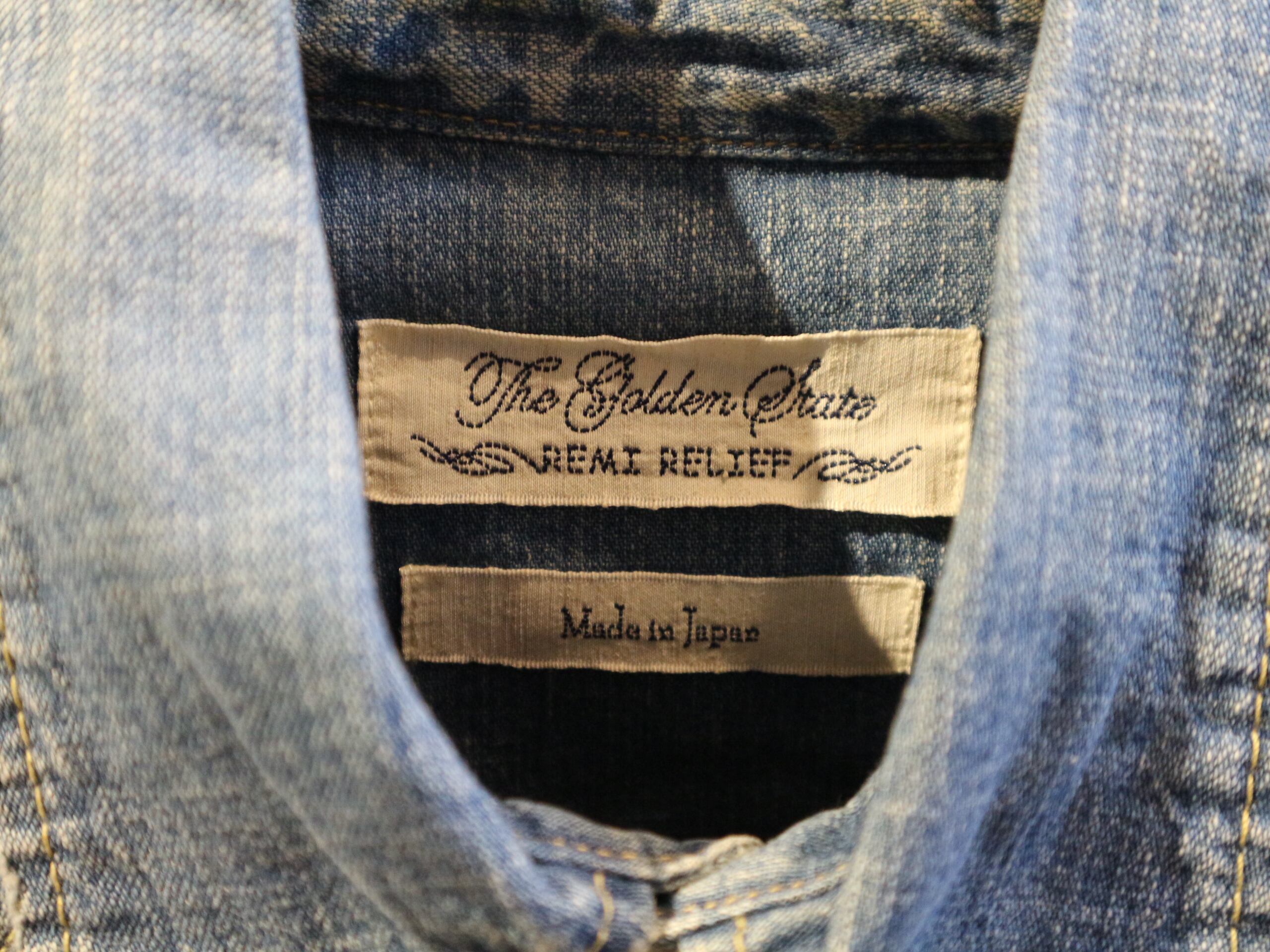 REMI RELIFEレミレリーフ★日本製デニムウェスタンシャツ★ヴィンテージ加工アメカジスタッズ★細身サイズSコットン100%