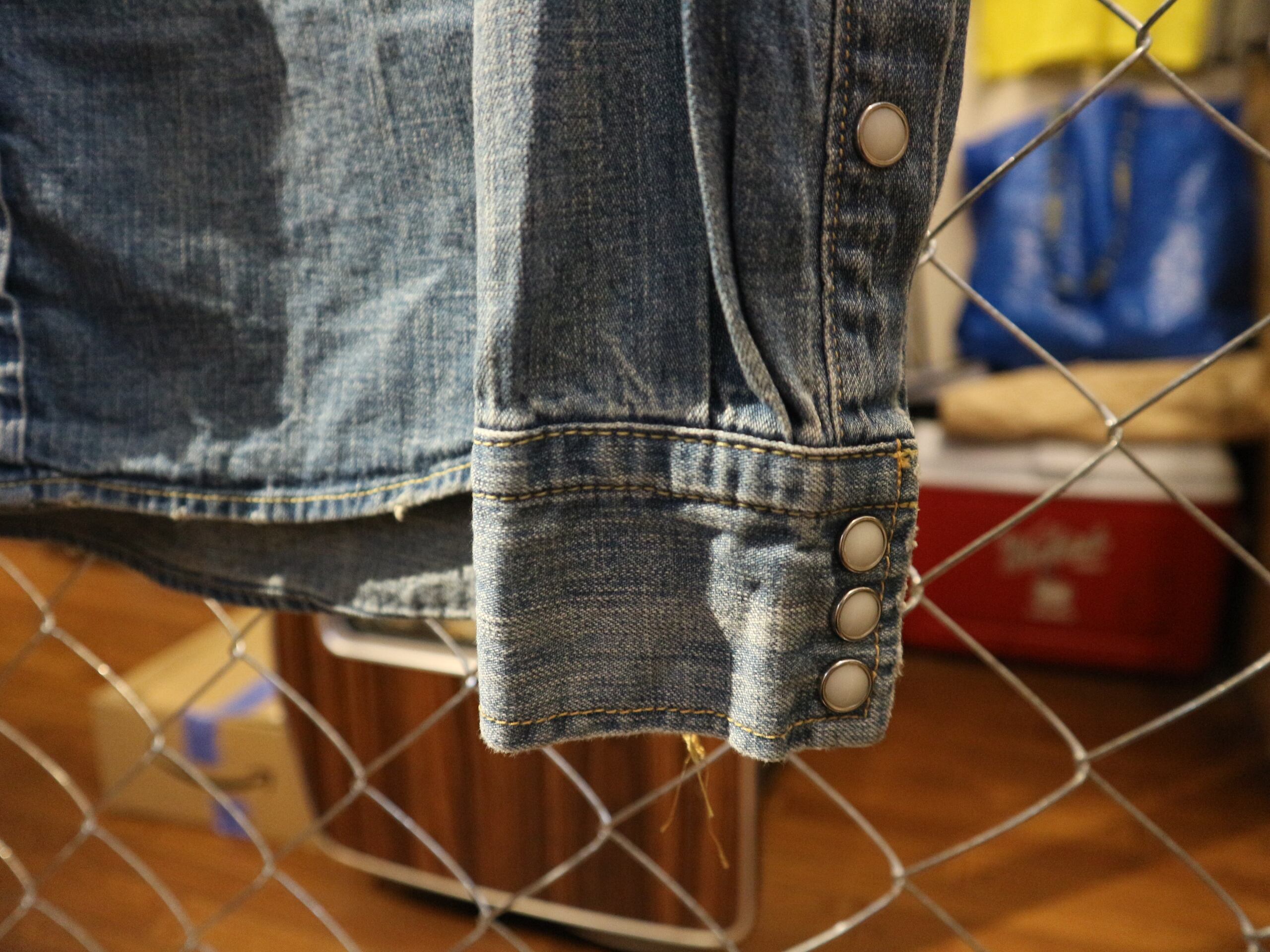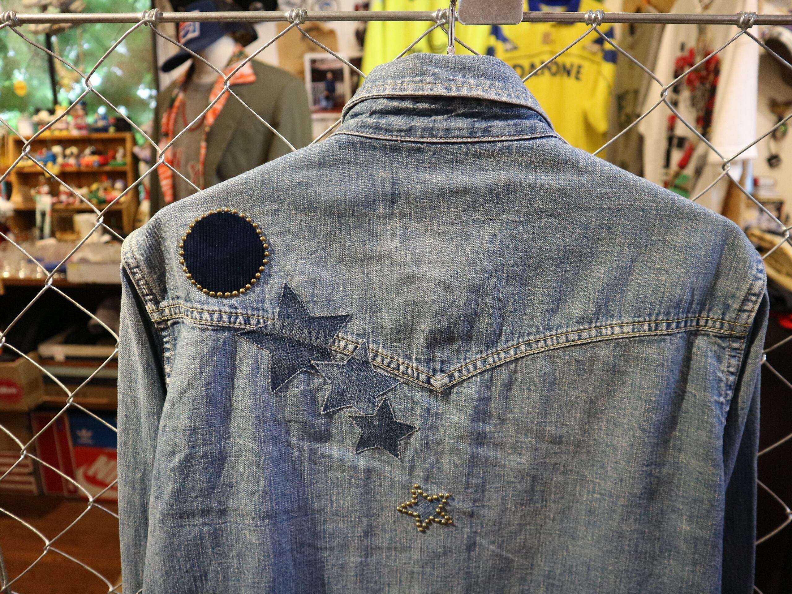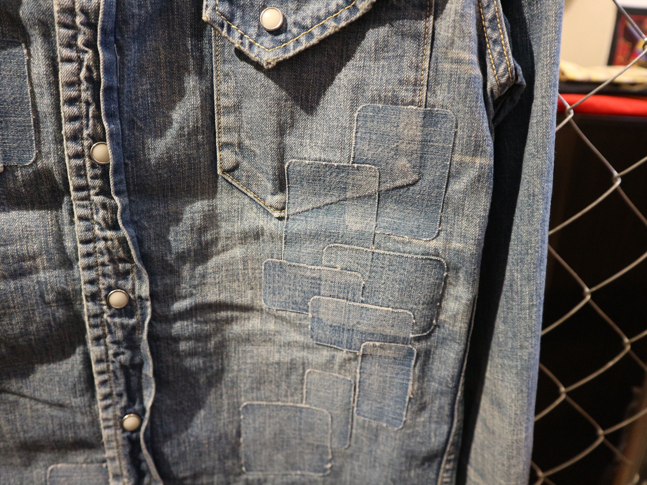 REMI RELIFEレミレリーフ★日本製デニムウェスタンシャツ★ヴィンテージ加工アメカジスタッズ★細身サイズSコットン100%