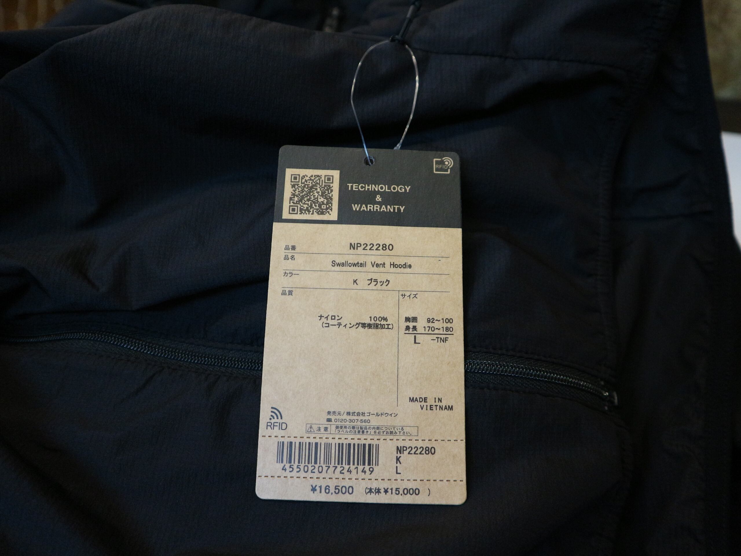 未使用新品★国内正規品THE NORTH FACEノースフェイス★スワローテイルベントフーディー★定価16500円ジャケット★サイズL黒
