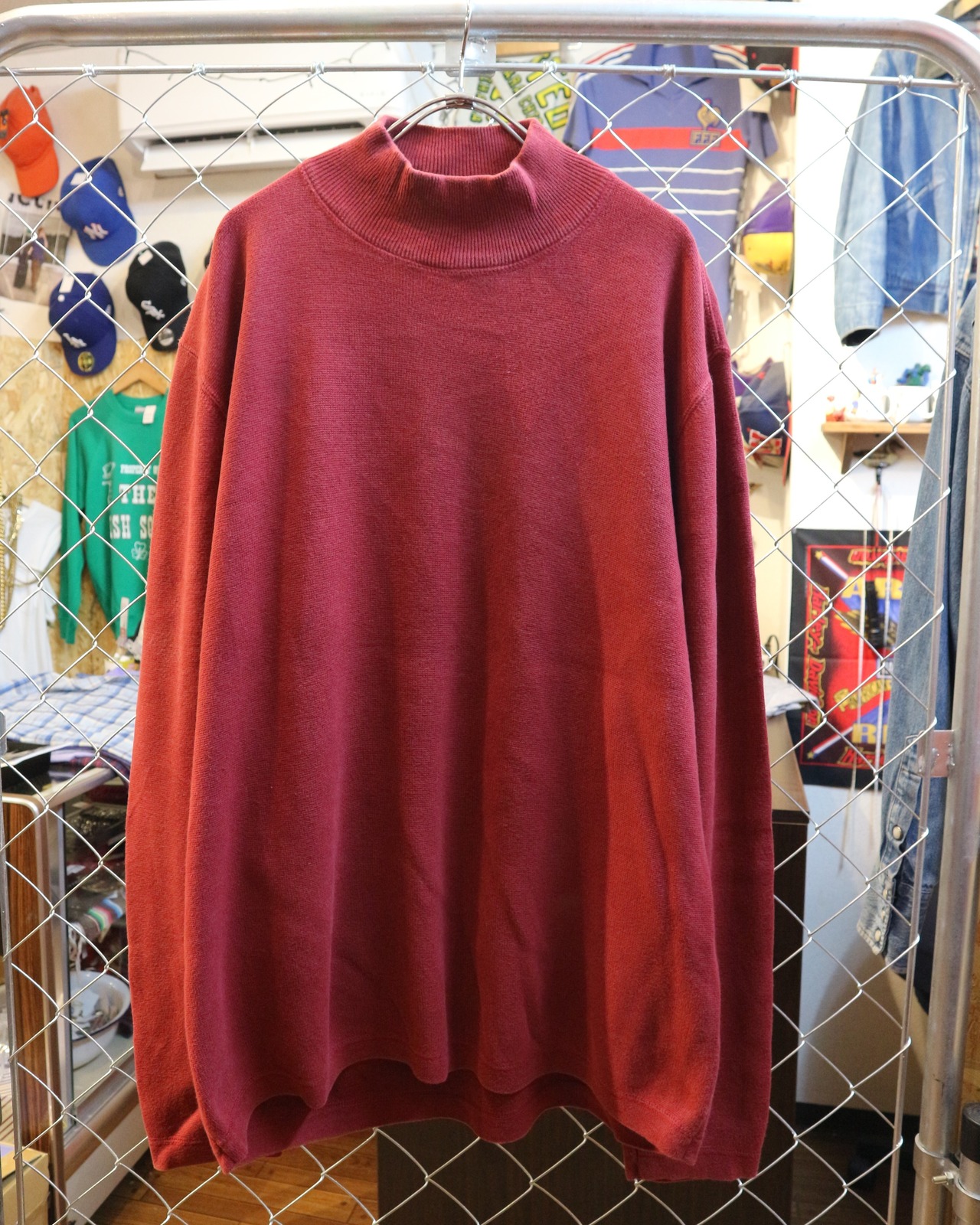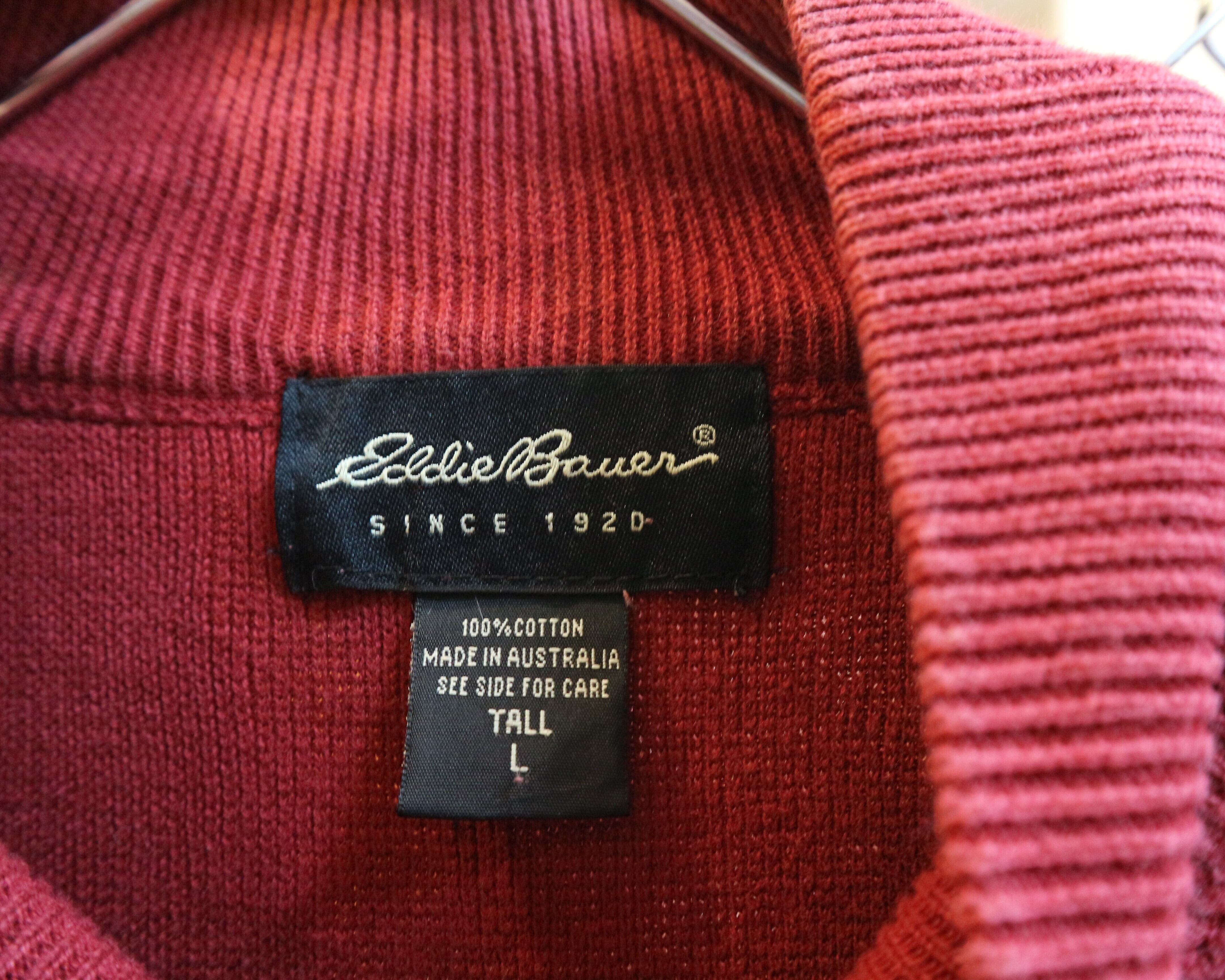 国内正規品エディーバウアー★オーストラリア製長袖モックネックカットソー★アウトドア★サイズLコットン100%エンジ