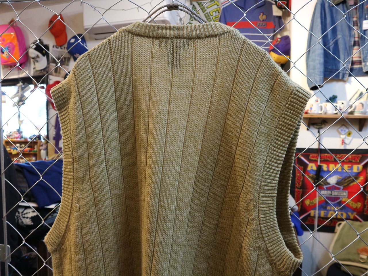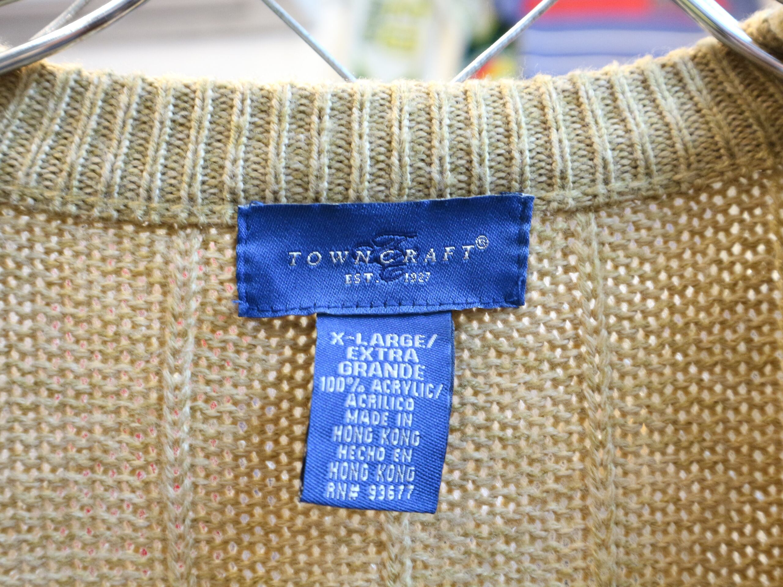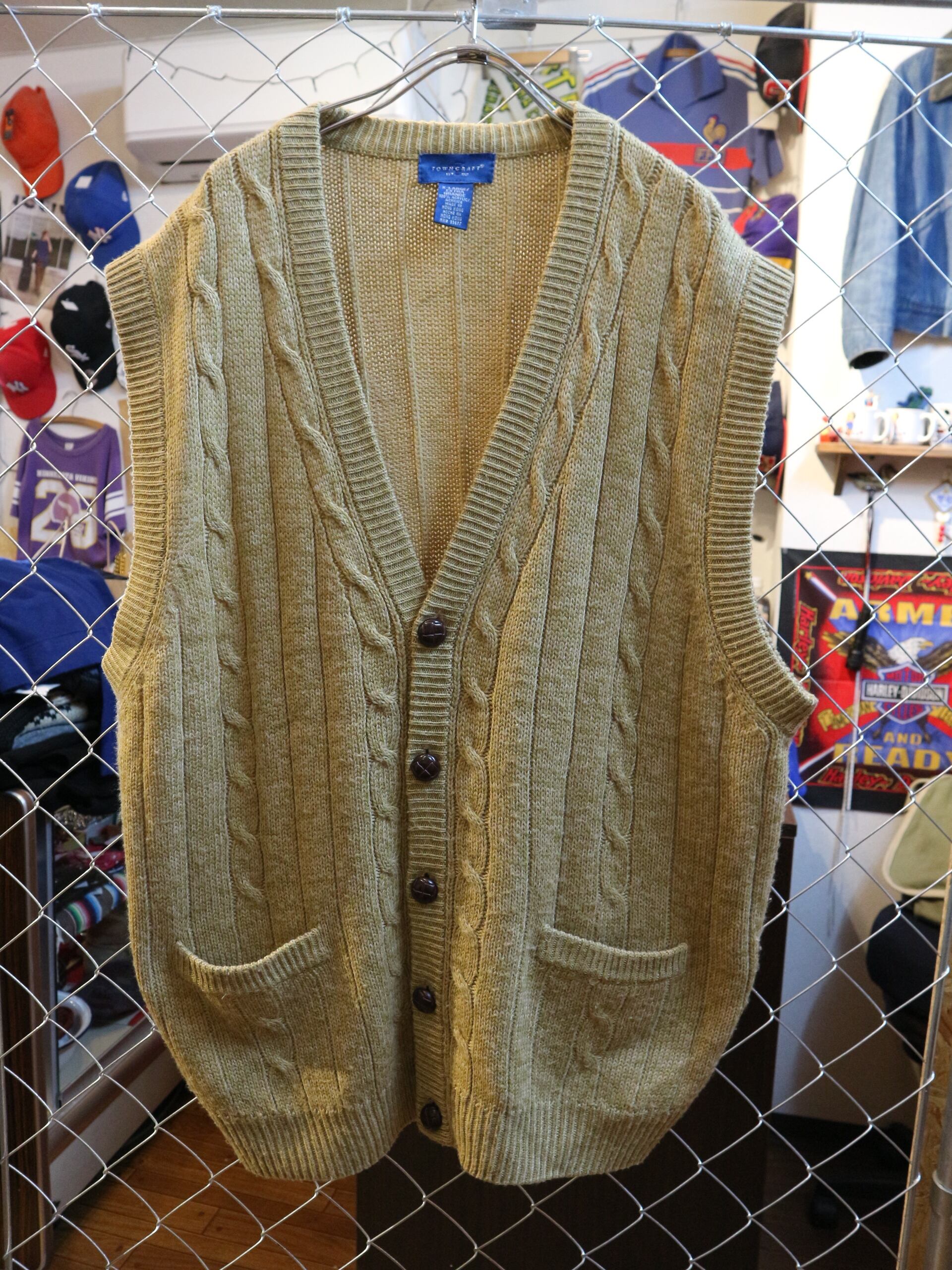 USA古着TOWN CRAFTタウンクラフト★90年代ニットベスト★アメカジアメトラケーブル編★ビッグサイズXLアクリル100%ベージュ