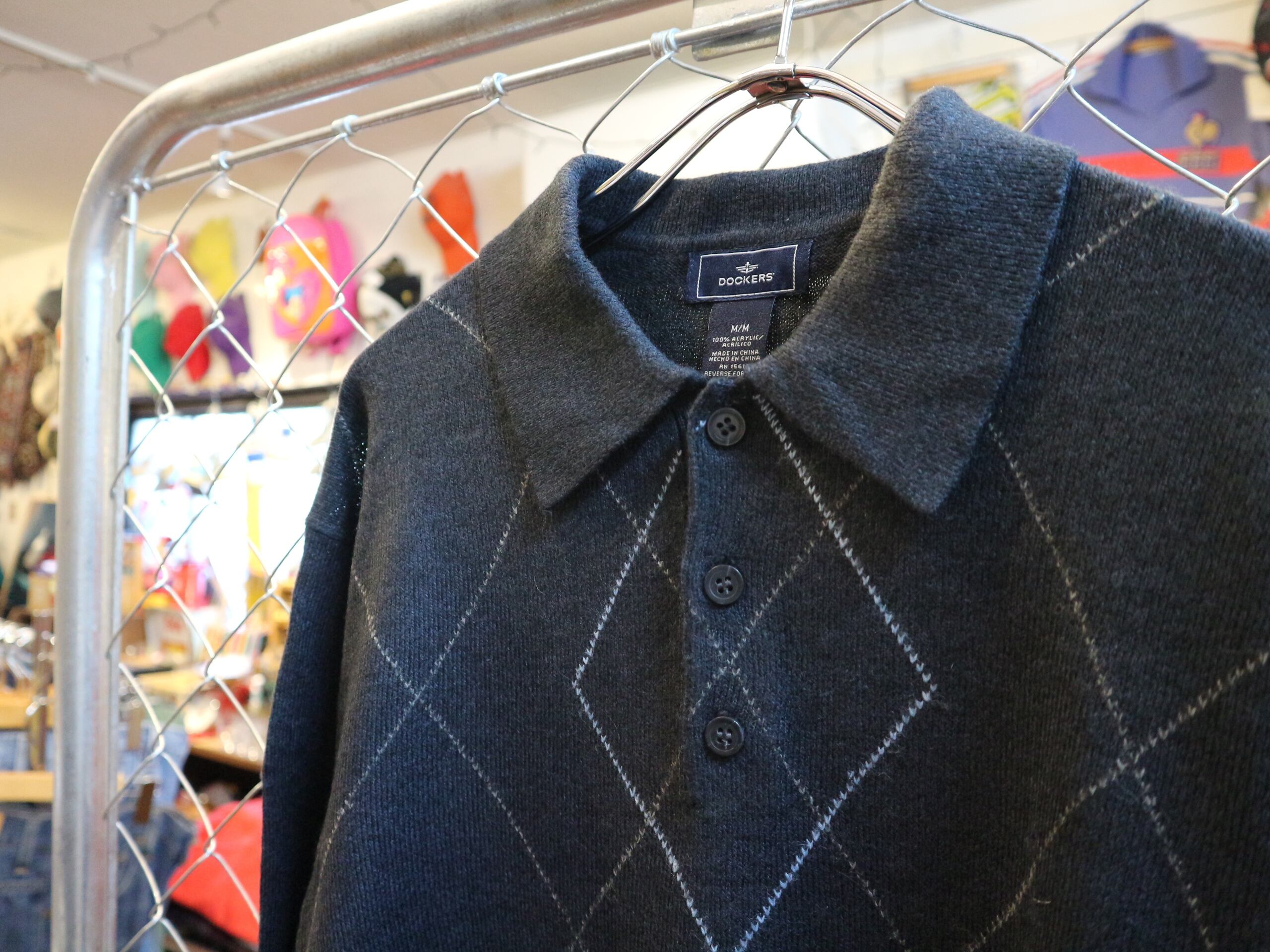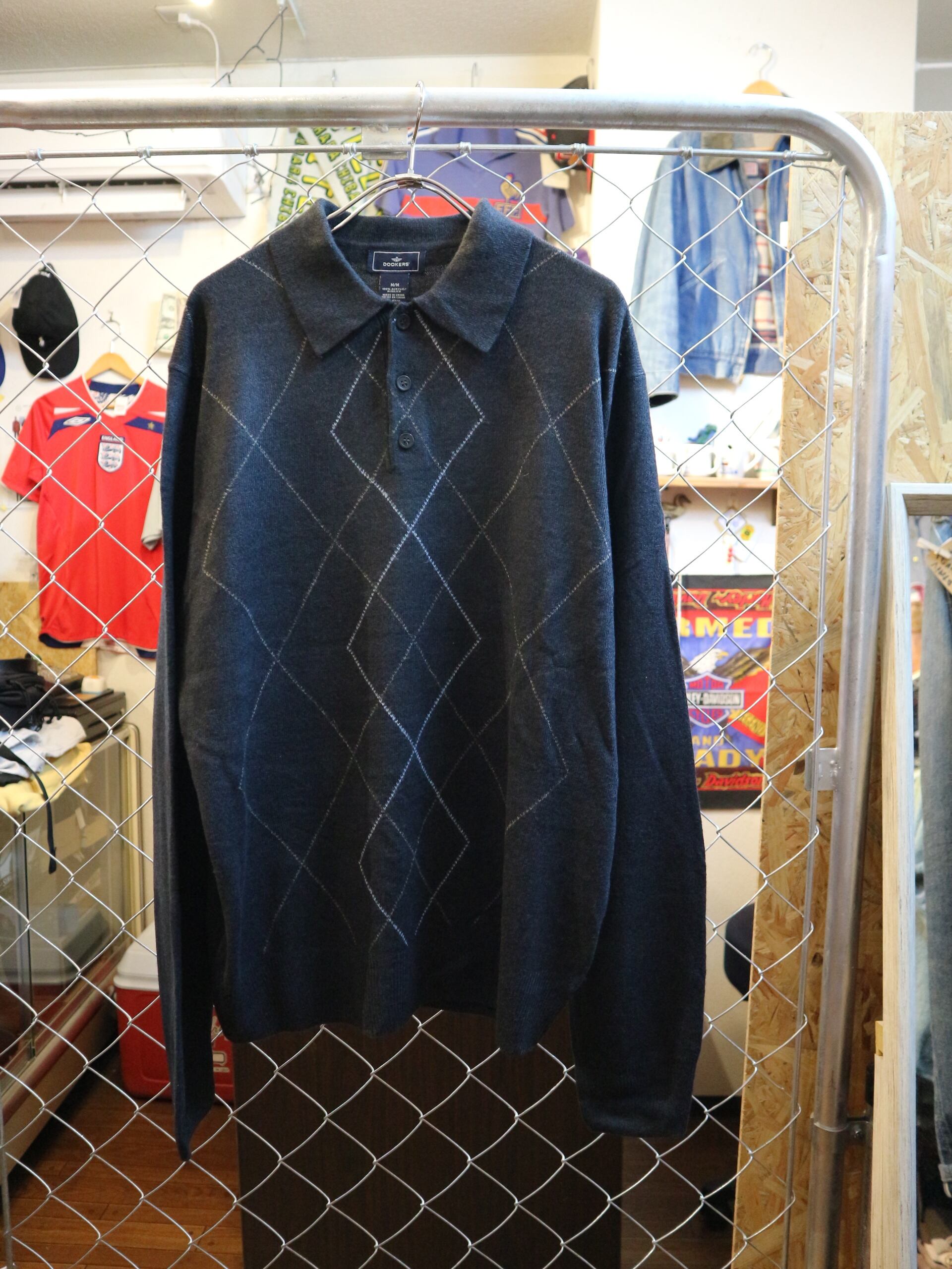 美品★USA古着リーバイス取扱DOCKERSドッカーズ★00年代長袖ニットポロシャツ★アーガイルアメカジアメトラ★サイズMアクリル