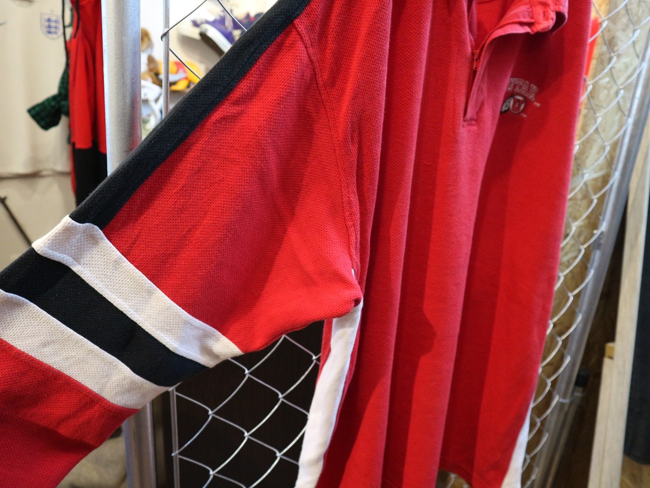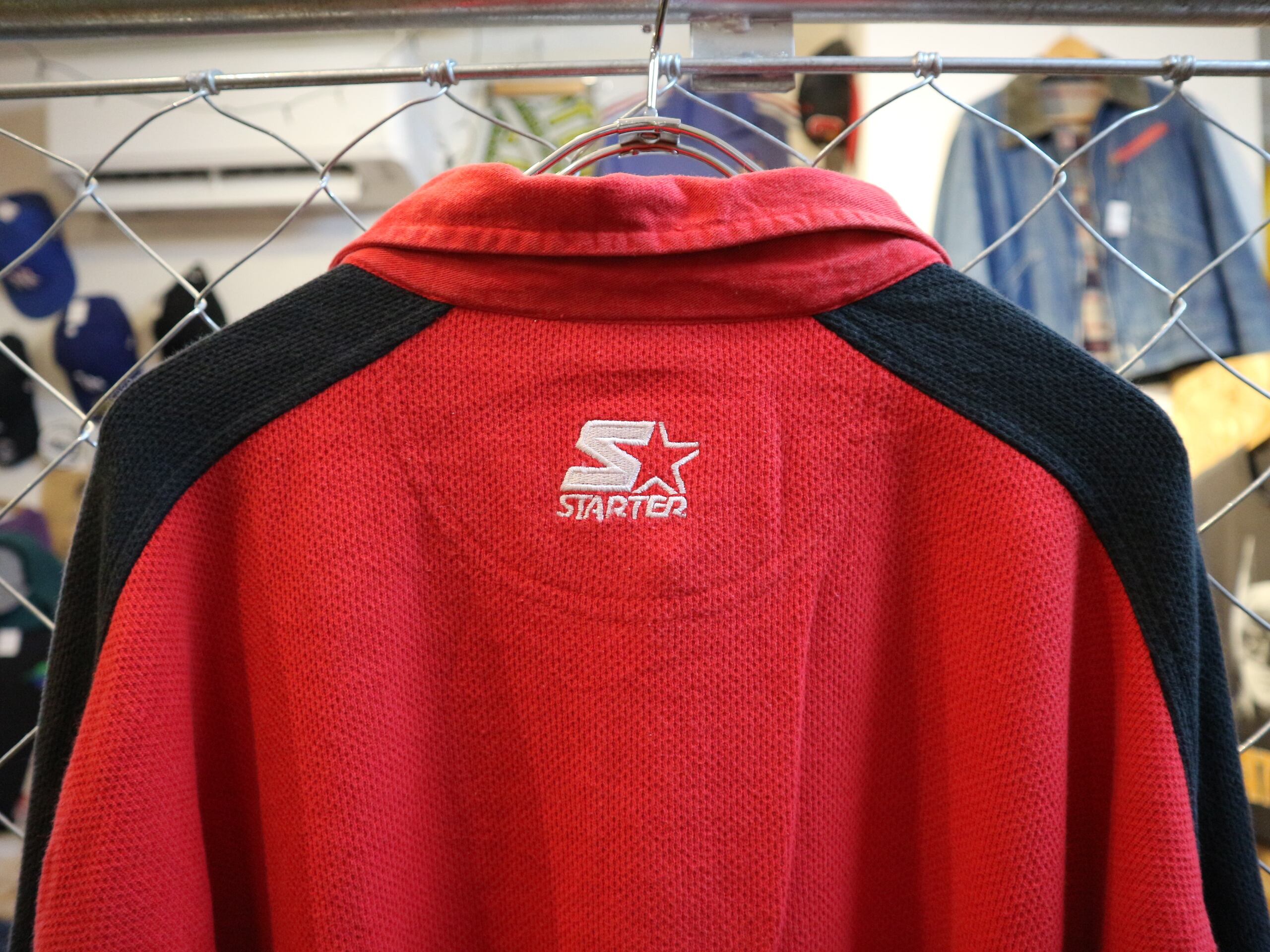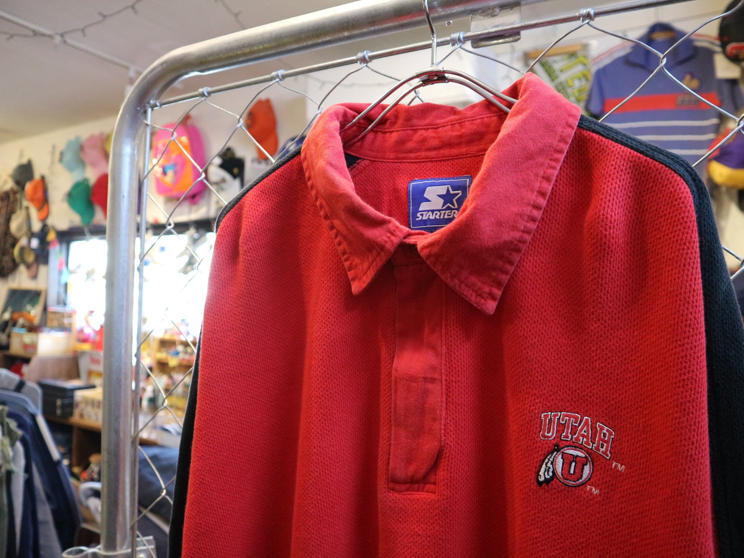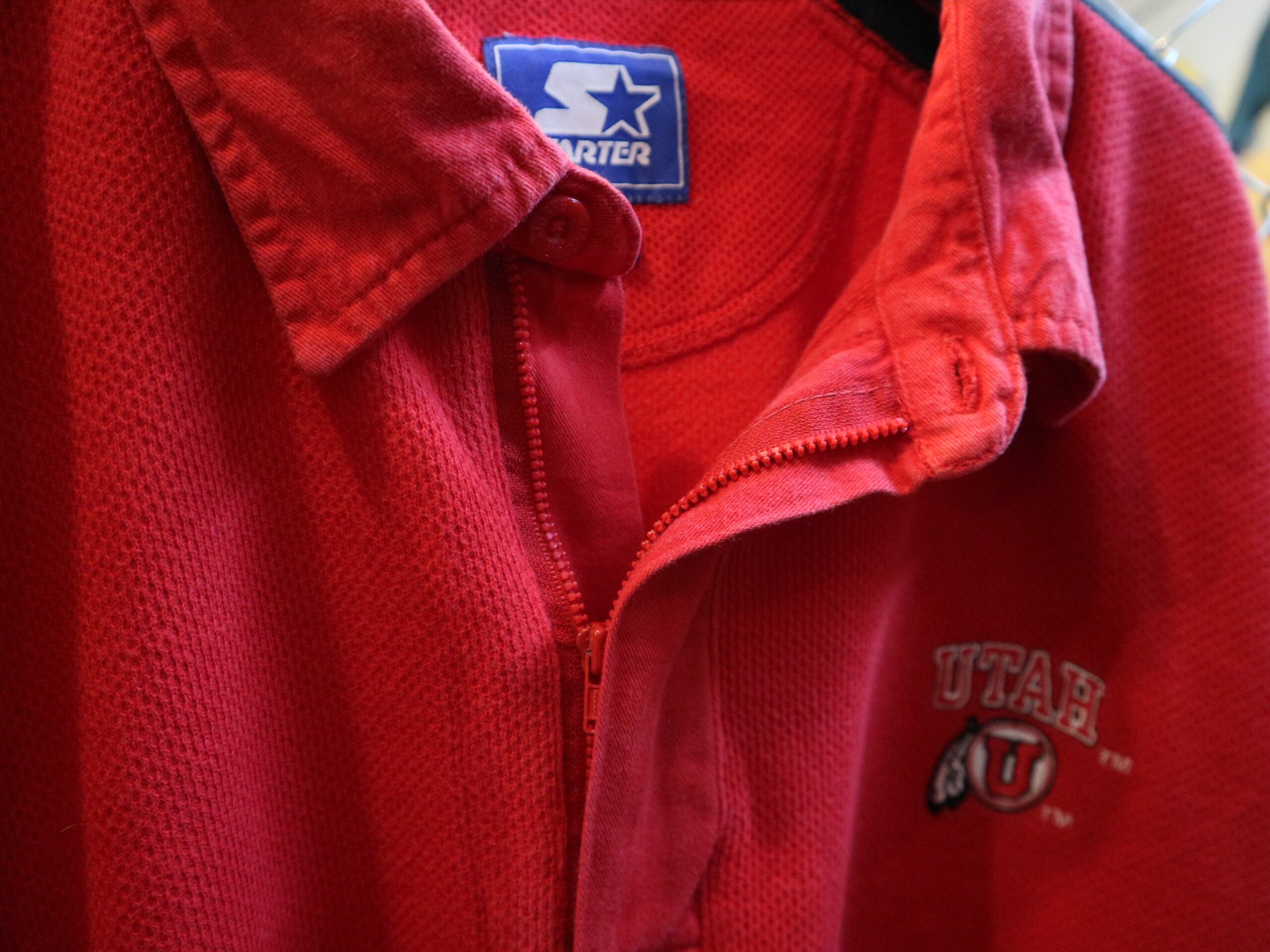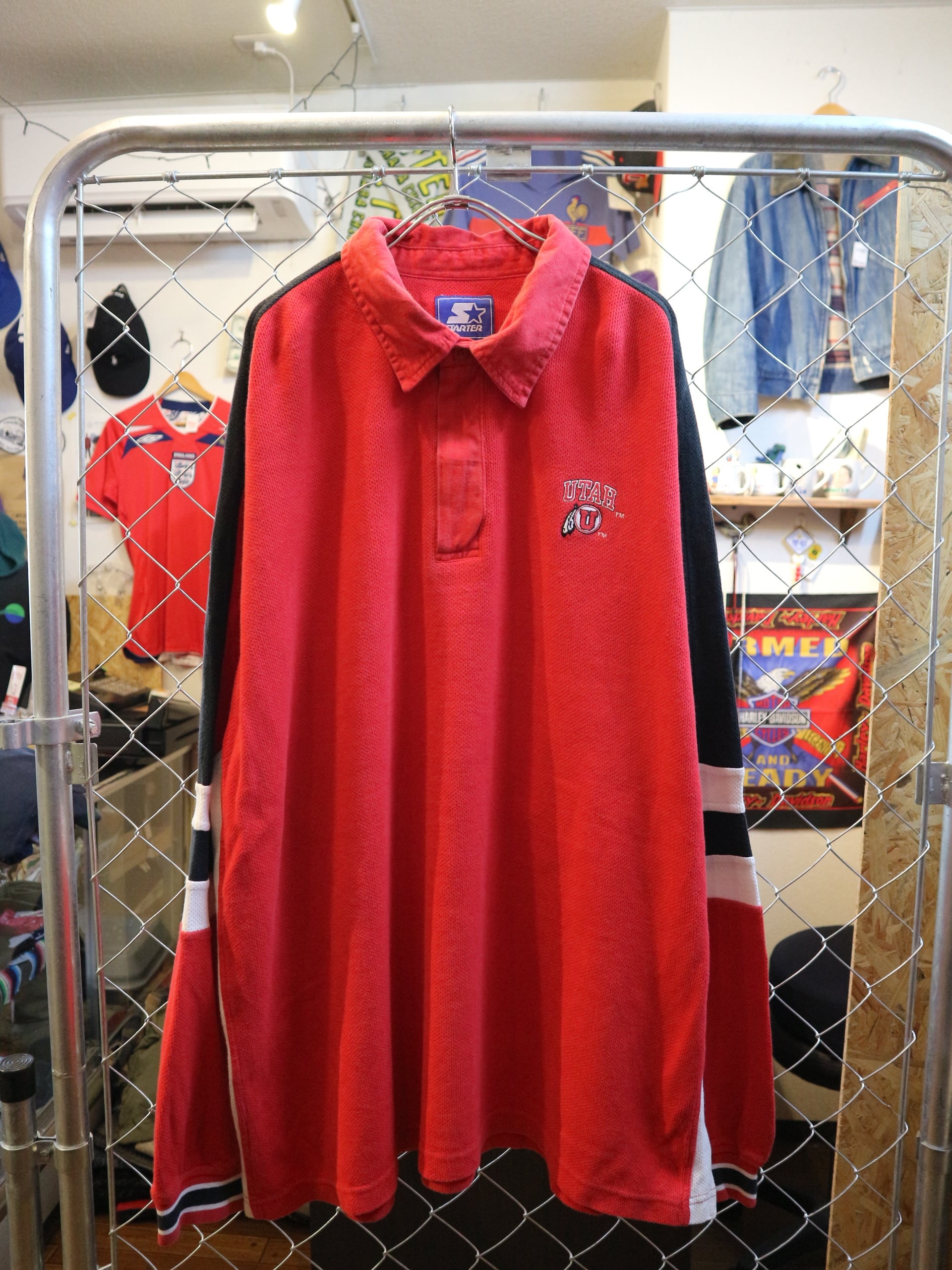 USA古着STARERスターター★OLD90-00年代長袖ポロシャツ★ユタ大学カレッジアメフトラガーハーフジップ★ビッグサイズXXL赤