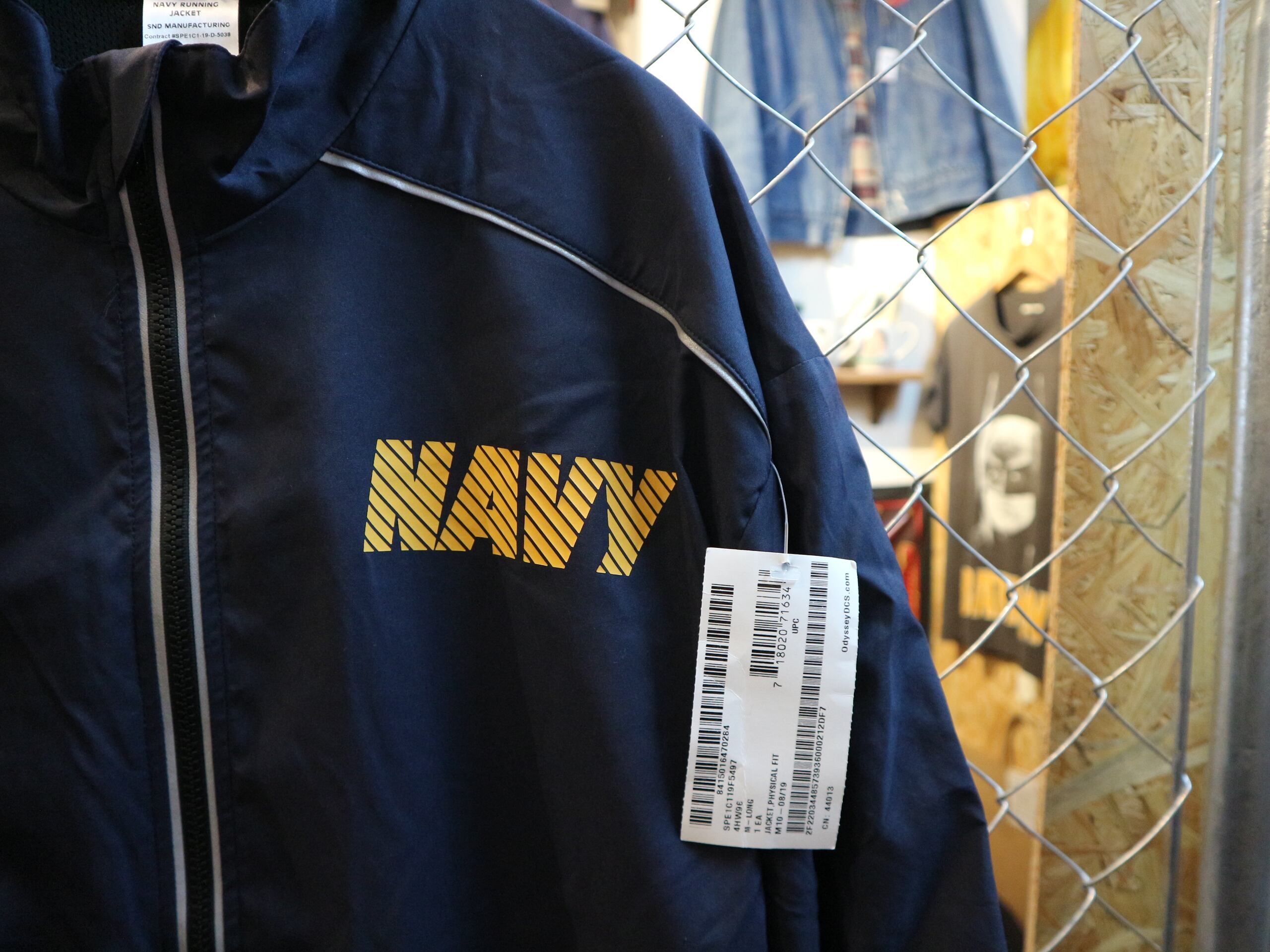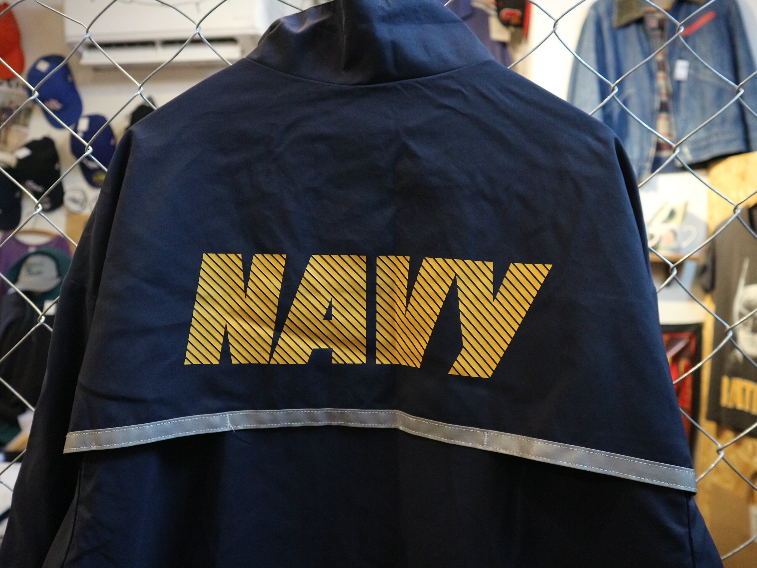 未使用デッドストック★U.S.NAVYネイビー海軍実物★USA製ランニングジャケット★リフレクター★サイズM‐LONGナイロン100%紺