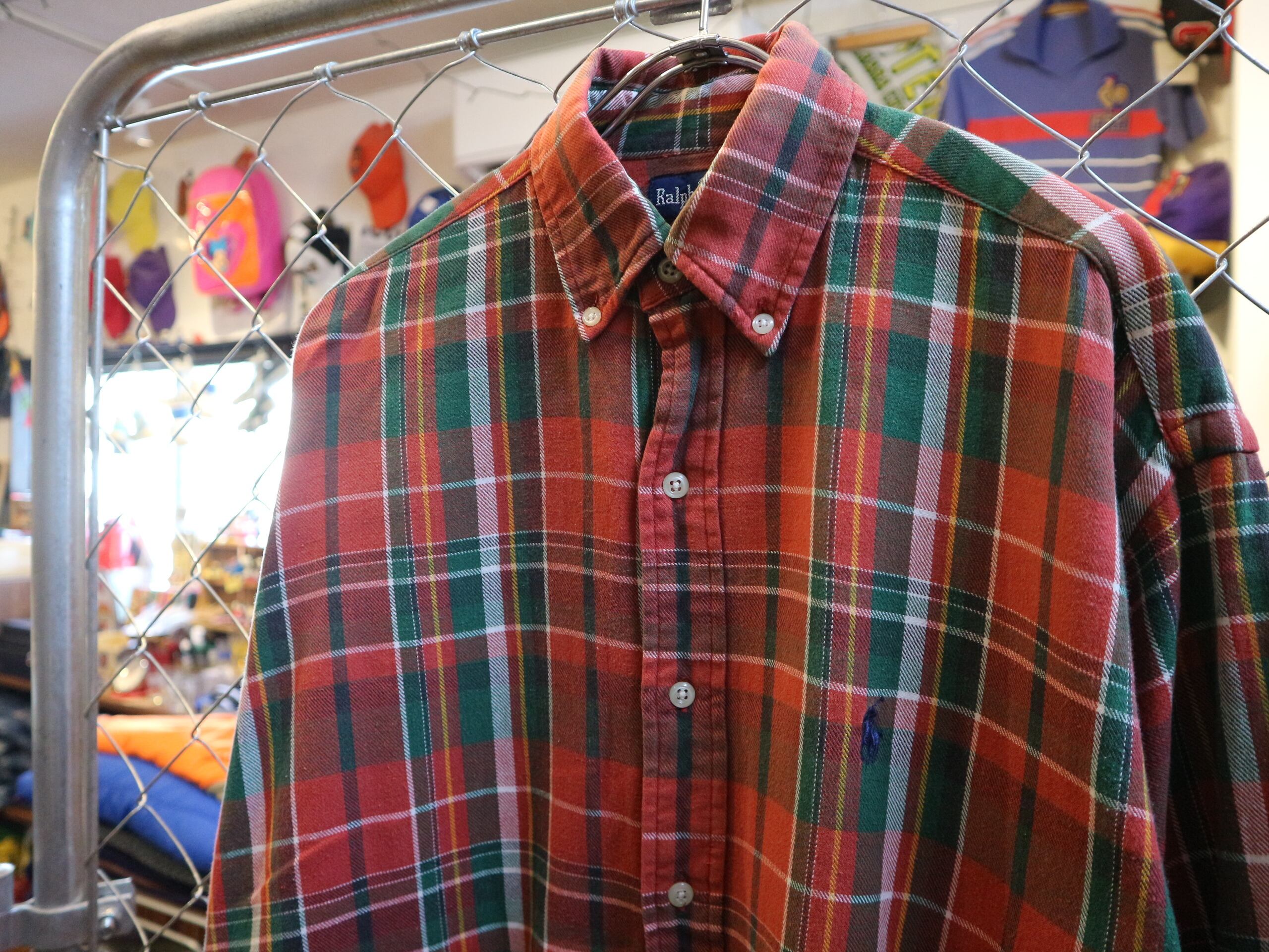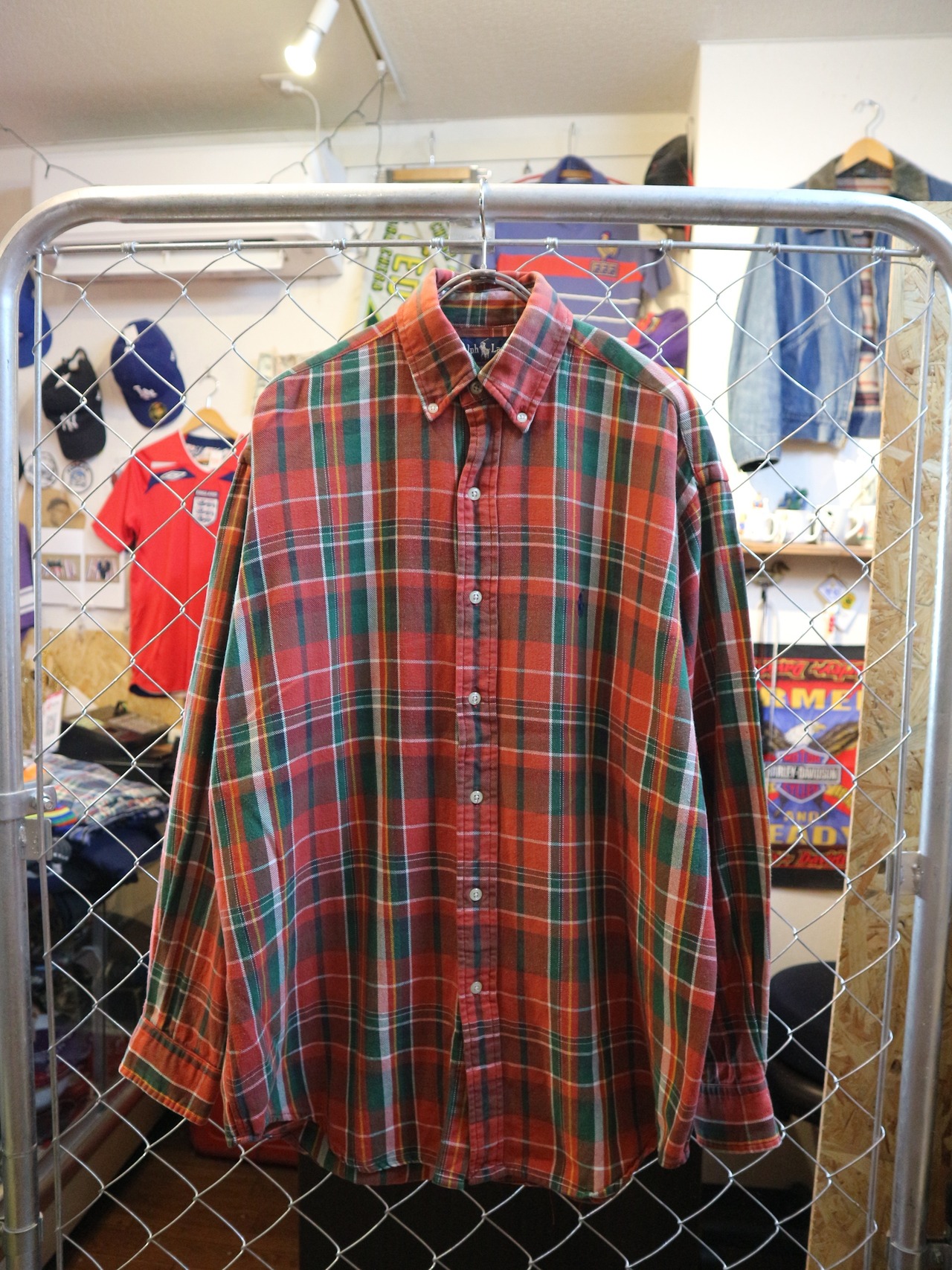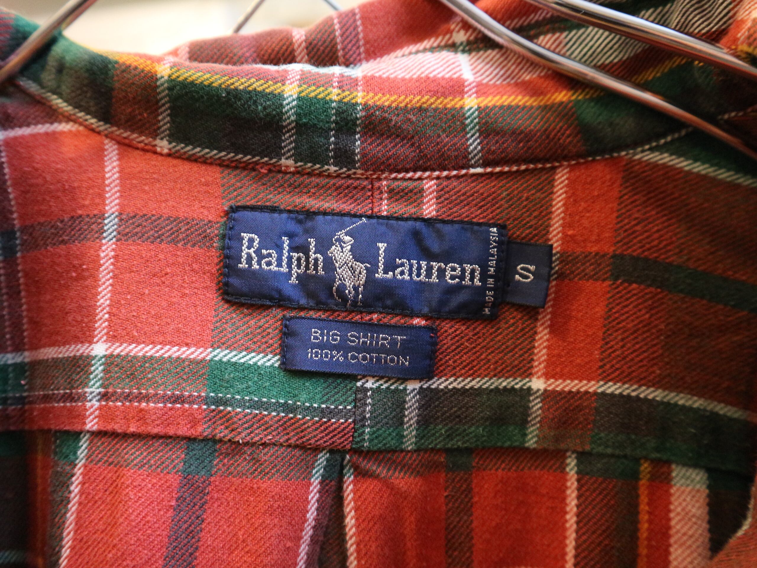 USA古着POLOポロラルフローレン★90年代長袖チェックシャツ★ポニー刺繍BIGSHIRTSアメカジアメトラ★サイズS赤系コットン100