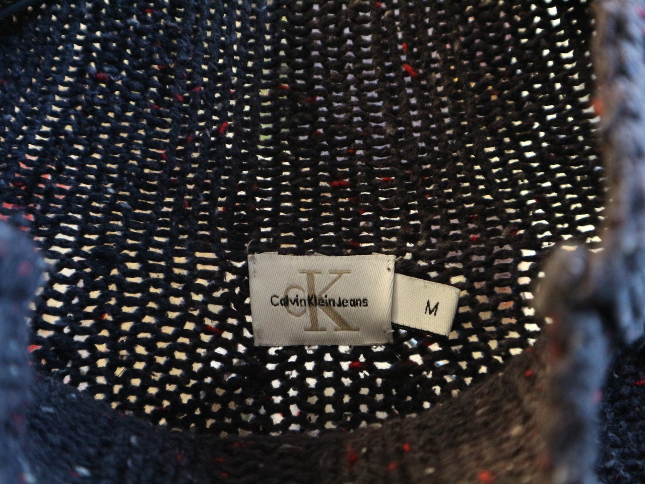 USA古着CalvinKleinJeansカルバンクラインCK★モックネックニットセーター★アメカジネップハイネック★サイズM紺系コットン