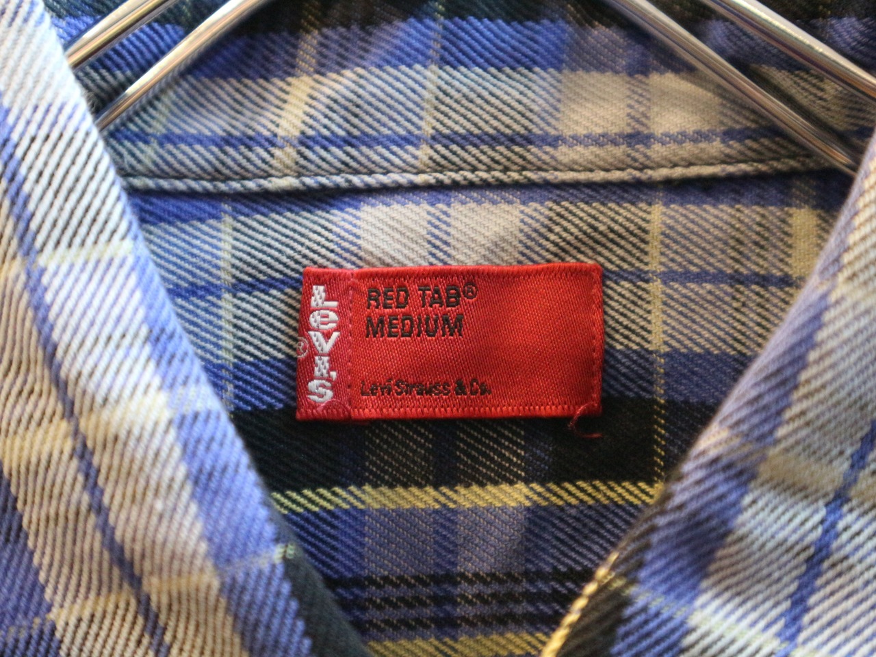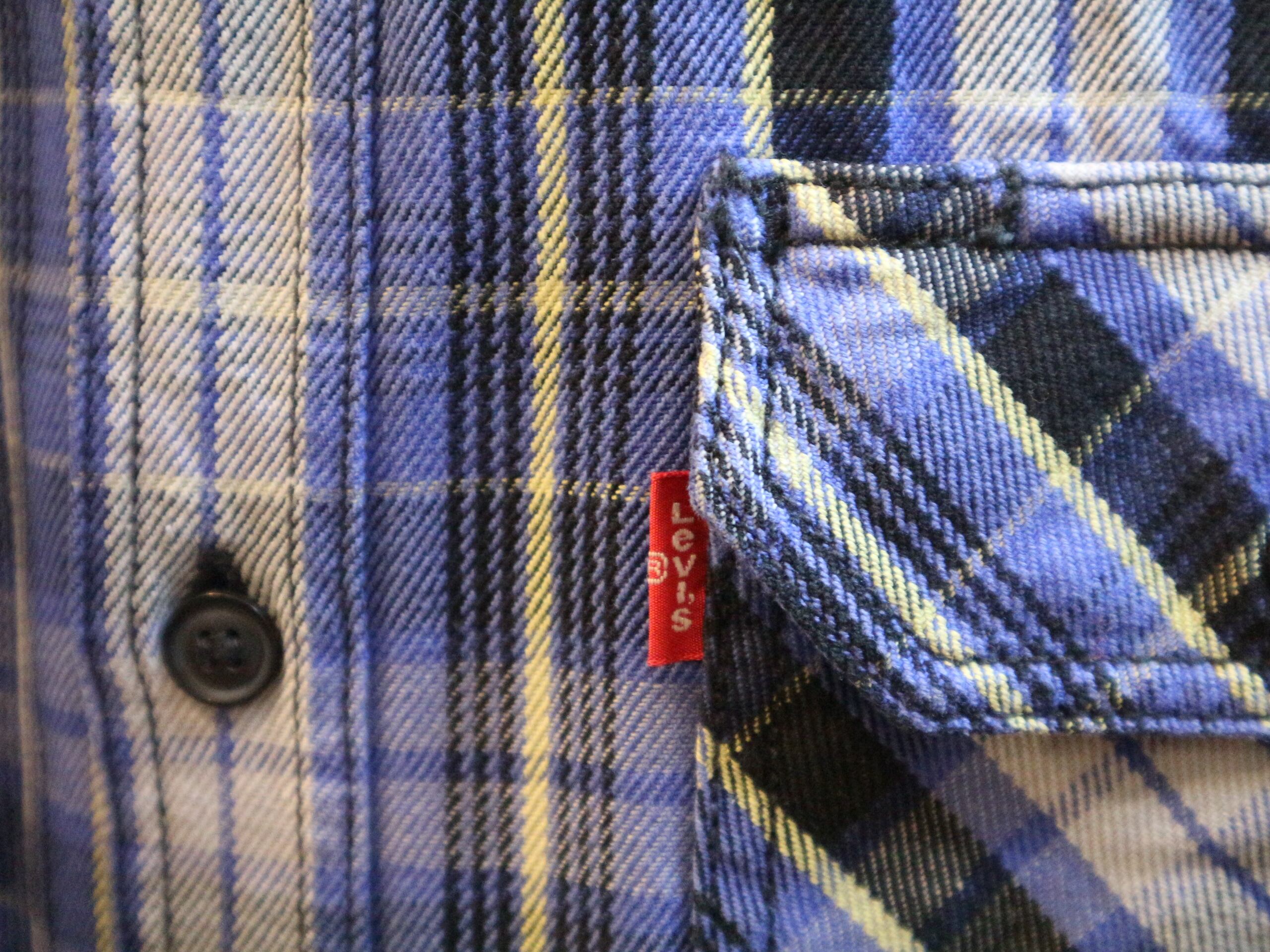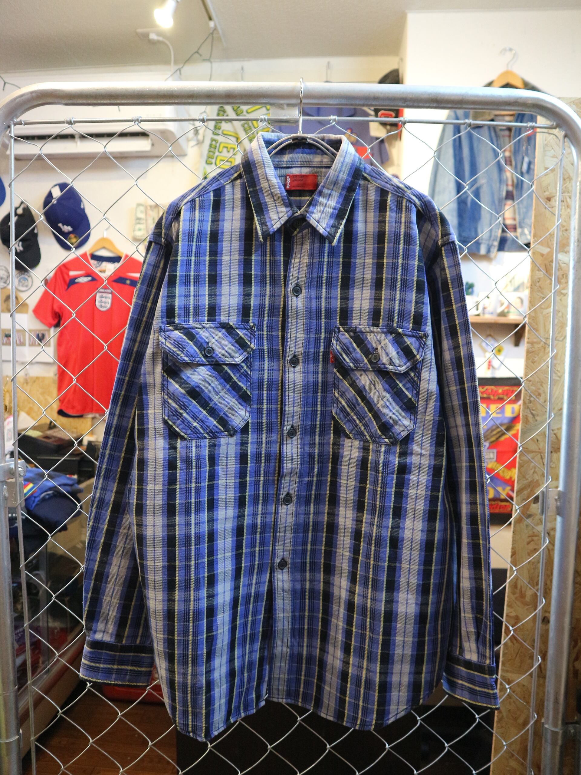 美品★国内正規品Levisリーバイス★長袖ヘビーネルシャツ★アメカジヘビネルチェックREDTAB★サイズM青系コットン100%