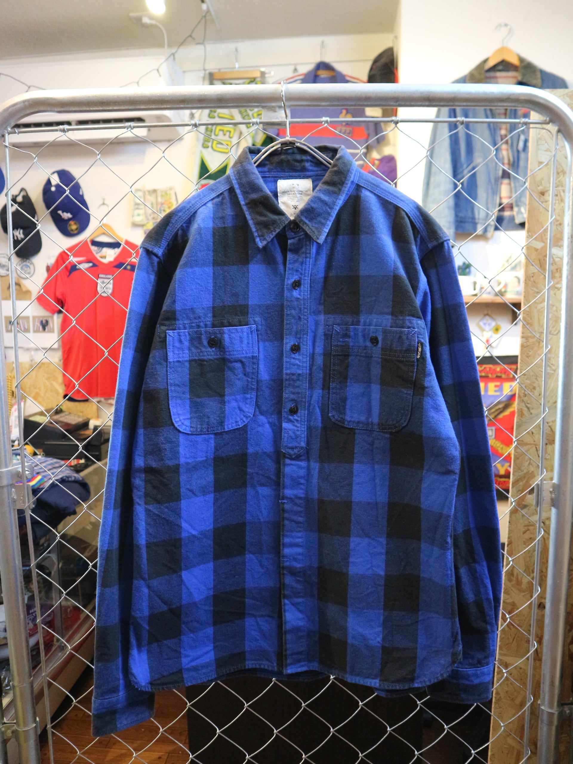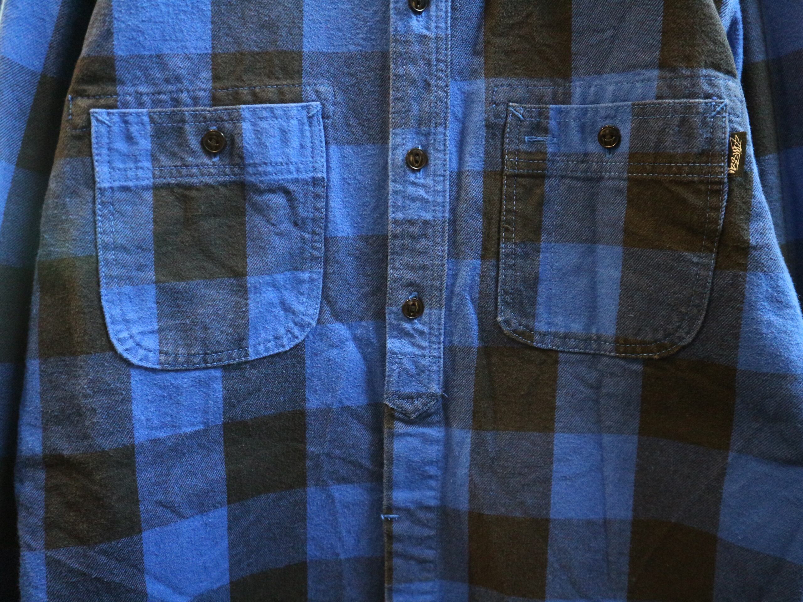 国内正規品Stussyステューシー★08年製長袖ヘビーネルシャツ★ヘビネルブロックチェックチャプター★サイズL青×黒コットン